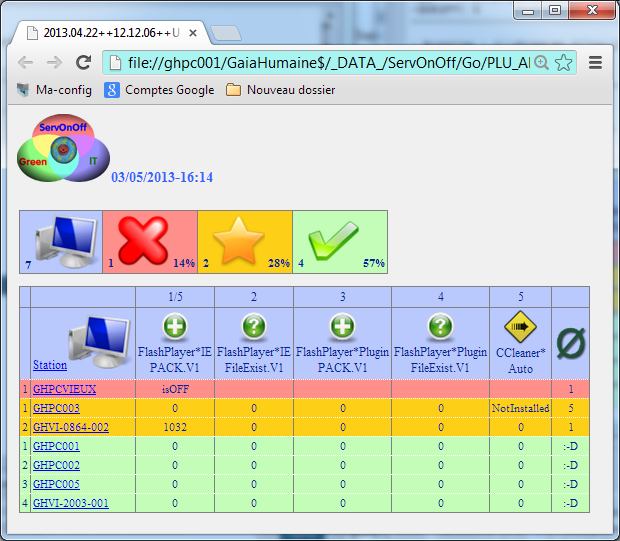 Notre logiciel ServOnOff permet de visualiser les rapports du gestionnaire de déploiement sous la forme de fichier html. Il détient, de plus, l'ensemble des Logs associés. Avec ces Log, ServOnOff sait si la planification s'est bien exécutée, et également, sait pourquoi elle a échoué. L'accès systématique aux Logs est une fonctionnalité rare dans les logiciels de déploiement de scripts.