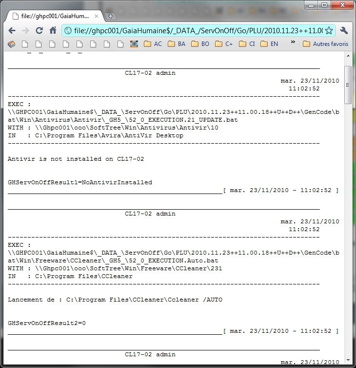 En cliquant sur un des ordinateurs présent dans la liste ci-dessus, vous obtenez les Logs de l'exécution des scripts sur celui-ci. Par exemple, en cliquant sur CL17-02, on a: